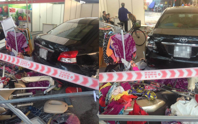 Tuy nhiên, khi đang tiến hành lùi xe, nam thanh niên là nhân viên rửa xe bất ngờ đạp nhầm chân phanh, chân ga và lùi chiếc xe đâm vào khu hội chợ đối diện. Lúc này, có rất đông người dân đang đứng mua hàng tại khu hội chợ.