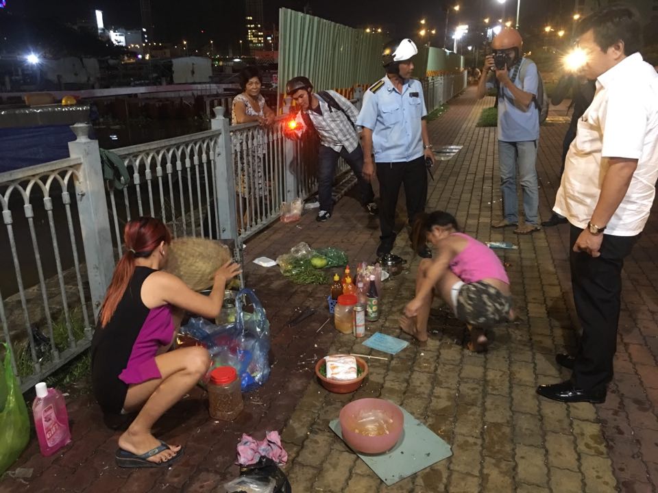 Cũng trong đêm lập lại trật tự vỉa hè, Đoàn liên ngành cũng phát hiện nhiều trường hợp thanh niên buông cần câu cá tại khu vực kênh Tàu Hủ - Bến Nghé ven đại lộ Võ Văn Kiệt. Sau đó, lực lượng đô thị đến đến thu giữ cần đồng thời nhắc nhở các cần thủ khu vực này không được câu cá. Trong khi đó, tại ven bờ kênh tại khu vực cầu Mống phát hiện nhiều người buôn bán hàng, nấu nướng tại đây nên ông Hải yêu cầu lực lượng đô thị lập biên bản xử lý. “Buôn bán, nấu nướng tại khu vực công cộng rất mất vệ sinh nên phải xử lý”, ông Hải nhấn mạnh.