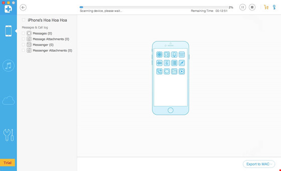 - Bước 3: Tiếp theo, bạn chỉ cần lựa chọn các mục cần khôi phục như Messages & Attachments, Contacts (danh bạ), Call History (lịch sử cuộc gọi), Photos (hình ảnh), App Document (tài liệu)… Sau đó nhấn Start và chờ một lát để ứng dụng quét qua toàn bộ thiết bị.