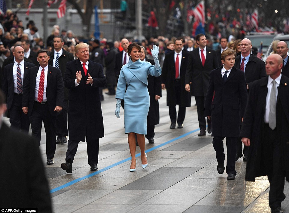 Khoảnh khắc này được ghi lại trong cuộc diễu hành truyền thống của tân chủ nhân Nhà Trắng trong ngày nhậm chức.