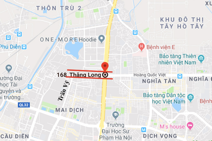 Bản đồ vị trí hầm chui dự kiến qua nút giao Hoàng Quốc Việt- Tây Thăng Long.