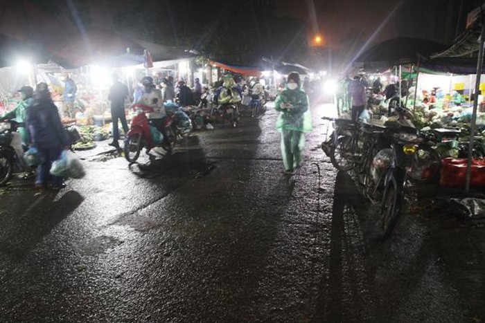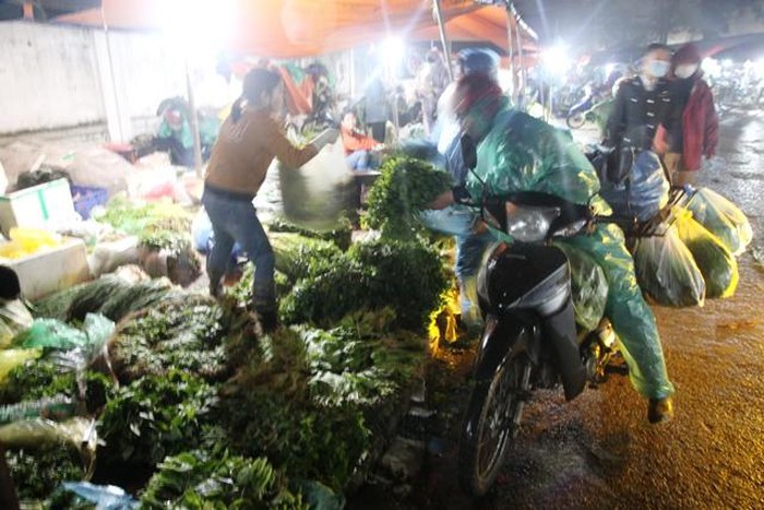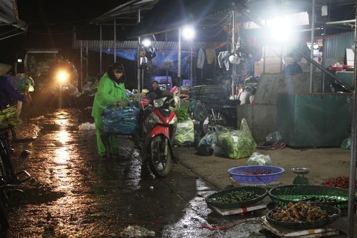 Trời mưa rét những ngày qua khiến bà con phải mặc quần áo mưa liên tục, vừa để khỏi bị ướt, vừa để giữ ấm cơ thể cho một đêm vận chuyển và dài trao đổi hàng hóa, nông sản tại khu chợ.