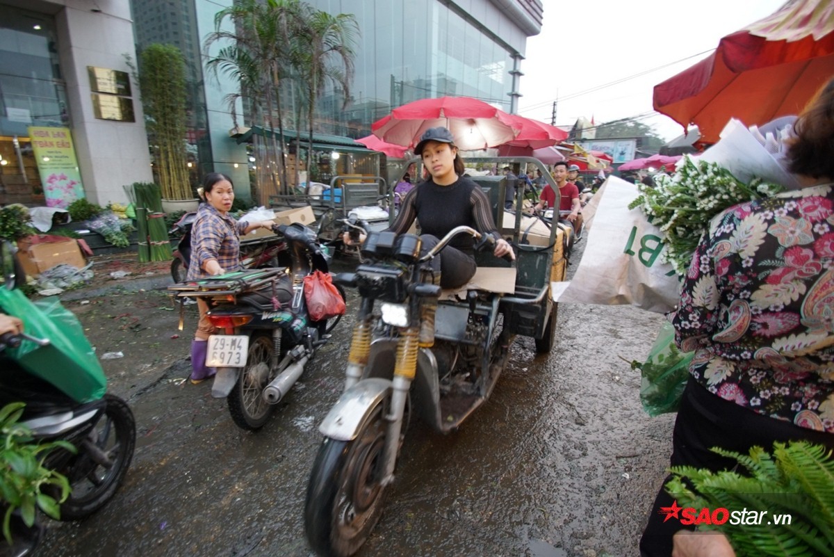 Những chiếc xe ba gác liên tục quanh quẩn ở chợ để mua hoa.
