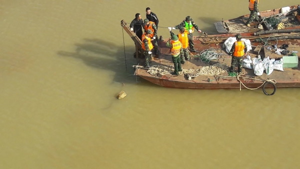 Lực lượng chức năng tiến hành trục vớt quả bom.