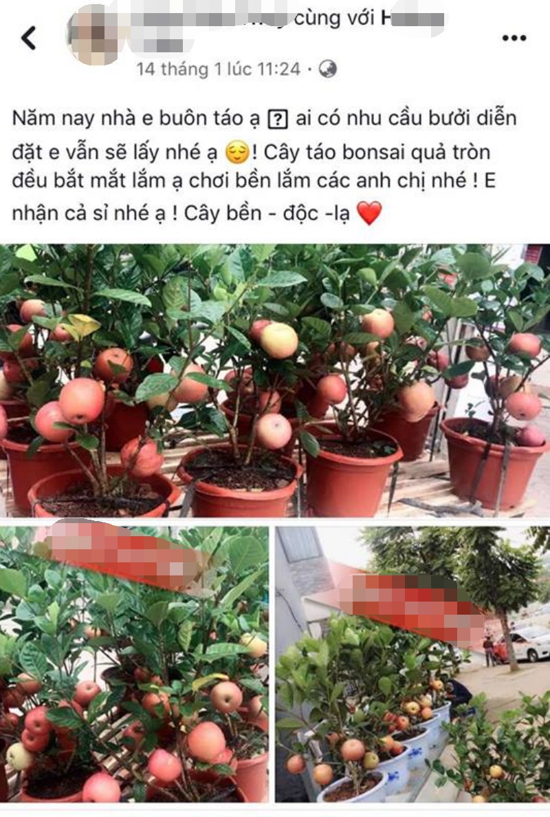 Bên cạnh đó, trên các trang mạng xã hội, nhiều người bán khẳng định giá táo bonsai được trồng theo công nghệ cao cấp nên sai quả, tuyệt đối không có chuyện dùng keo 502 để gắn quả. Khách mua về bày chơi Tết cả tháng, sau khi quả rụng hết có thể đem trồng để đến mùa cây lại ra hoa kết trái tiếp.