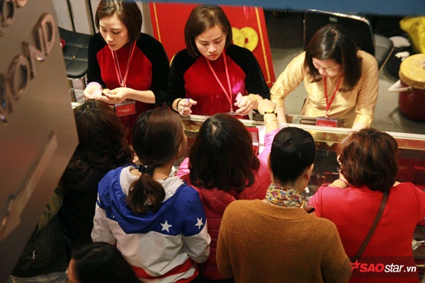 Mặc dù lượng khách hàng mua vàng khá cao, tuy nhiên, do thời tiết mát mẻ cùng với việc được phát ghế ngồi nên khách hàng không tỏ ra mệt mỏi.