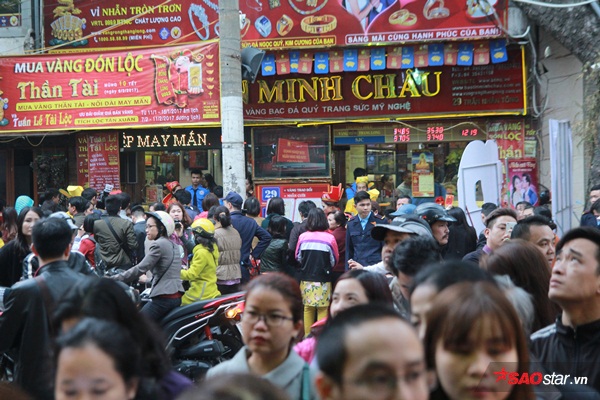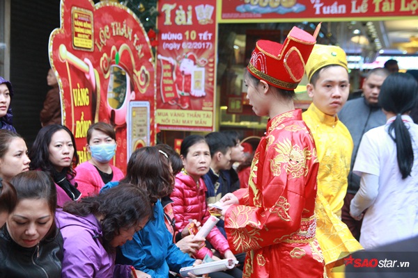 Cửa hàng vàng bạc đá quý Bảo Tín Minh Châu chật kín người đến mua vàng. Chị Huyền (Hai Bà Trưng, Hà Nội) - một khách hàng mua vàng tại đây cho biết: “Từ sáng đến giờ, tôi đã phải đi tới 3 tiệm vàng mới mua được một miếng vàng con hình gà trống ưng ý. Năm nào cũng vậy, cứ vào ngày vía Thần Tài, tôi đi mua vàng để cầu may. Với tôi đây là việc làm mang ý nghĩa tâm linh rất tốt đẹp”.