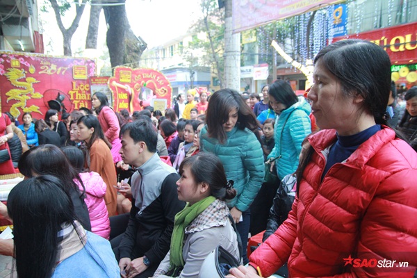 Sáng sớm ngày 6/2 (tức mùng 10 âm lịch), hàng trăm người xếp hàng sẵn chờ mua vàng ngày vía Thần Tài ở cửa hàng trên phố Trần Nhân Tông, Hà Nội.