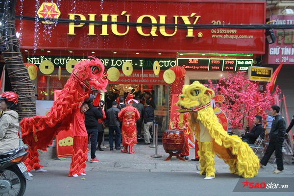 Nhiều cửa hàng vàng bạc đá quý tổ chức mua lân để thu hút khách hàng.