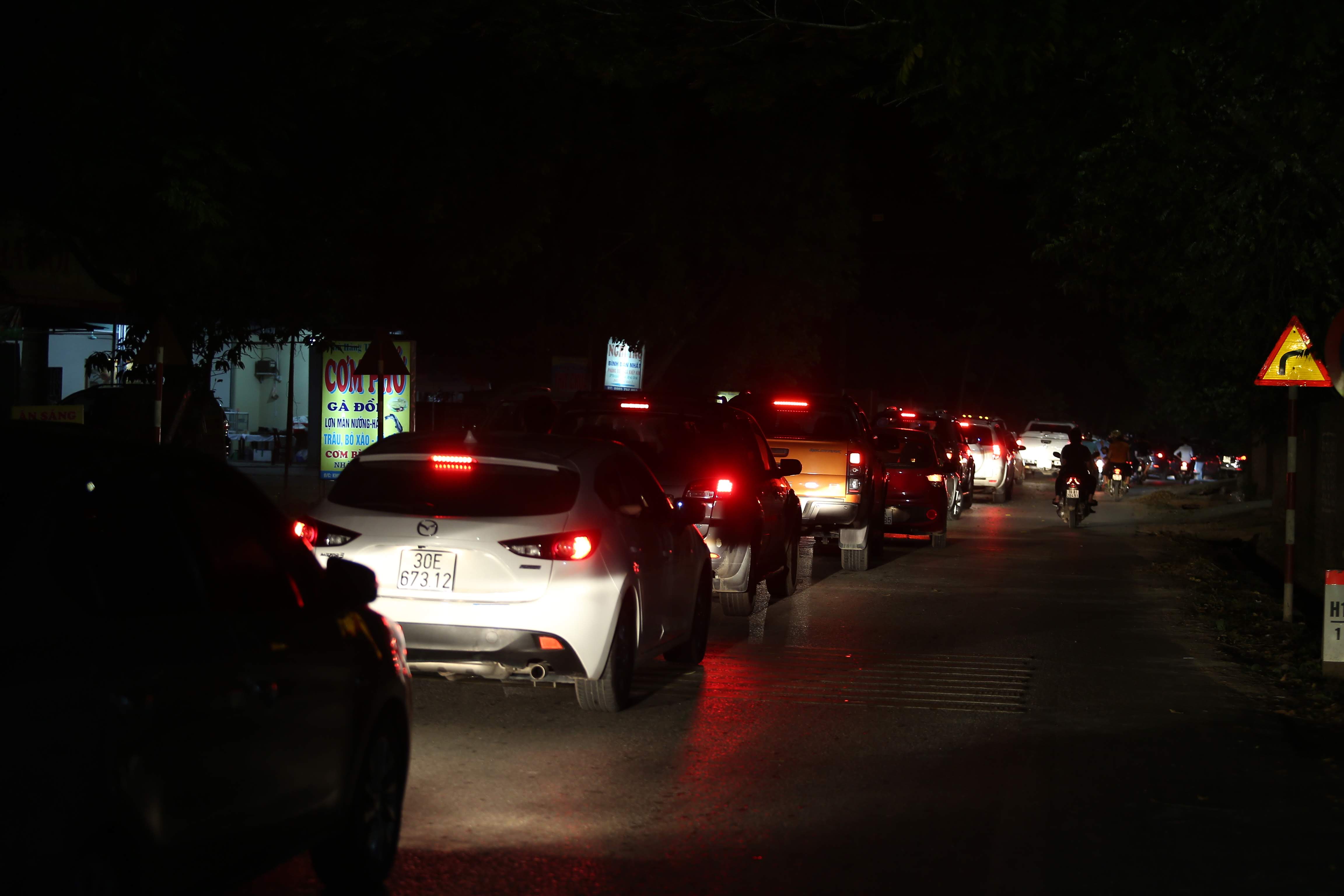Hàng loạt xe nối đuôi nhau trên đường lên đền Thượng.