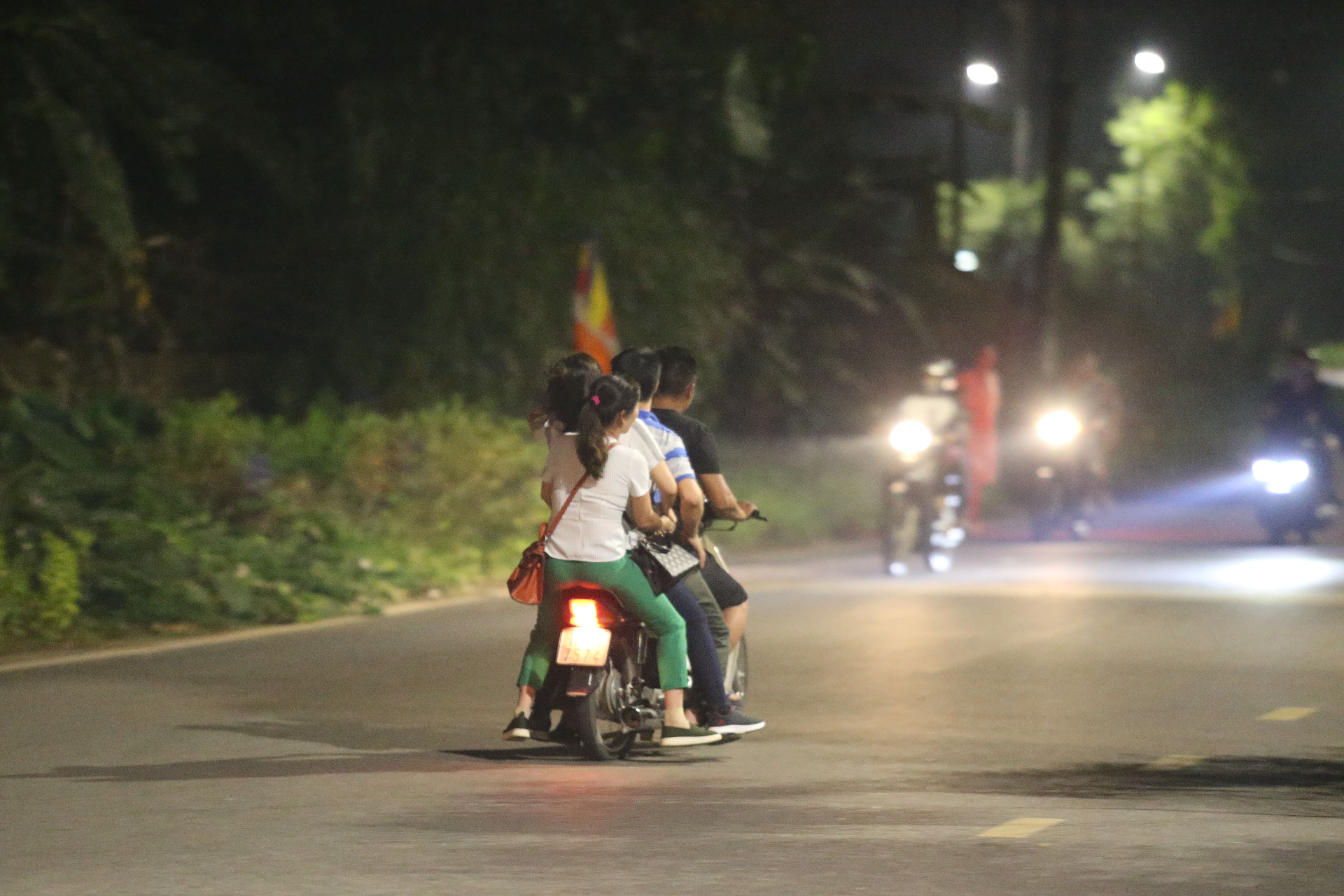 Nhiều người thậm chí không đội mũ bảo hiểm, 4-5 người trên một chiếc xe máy trên đường vào lễ Đền Hùng.