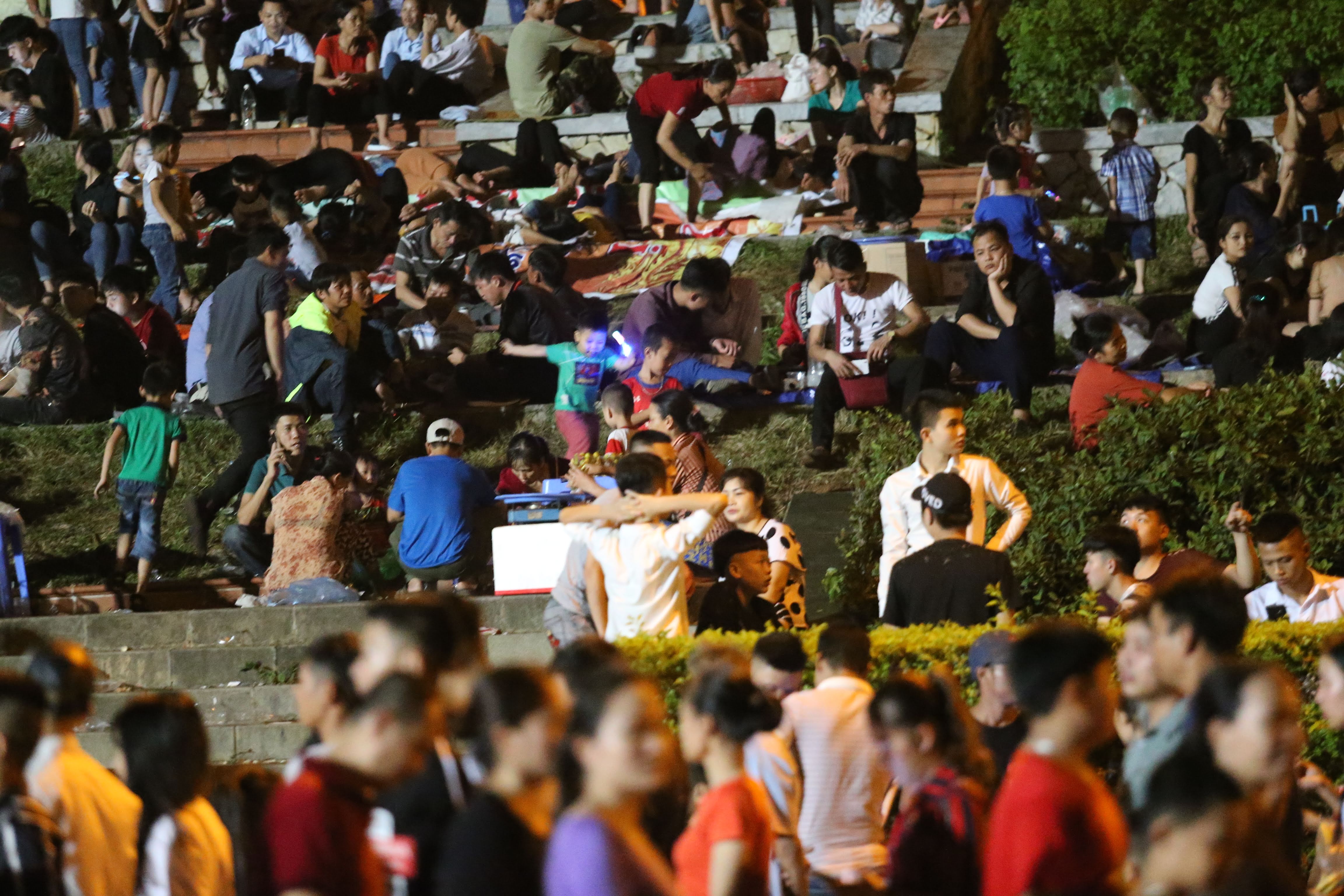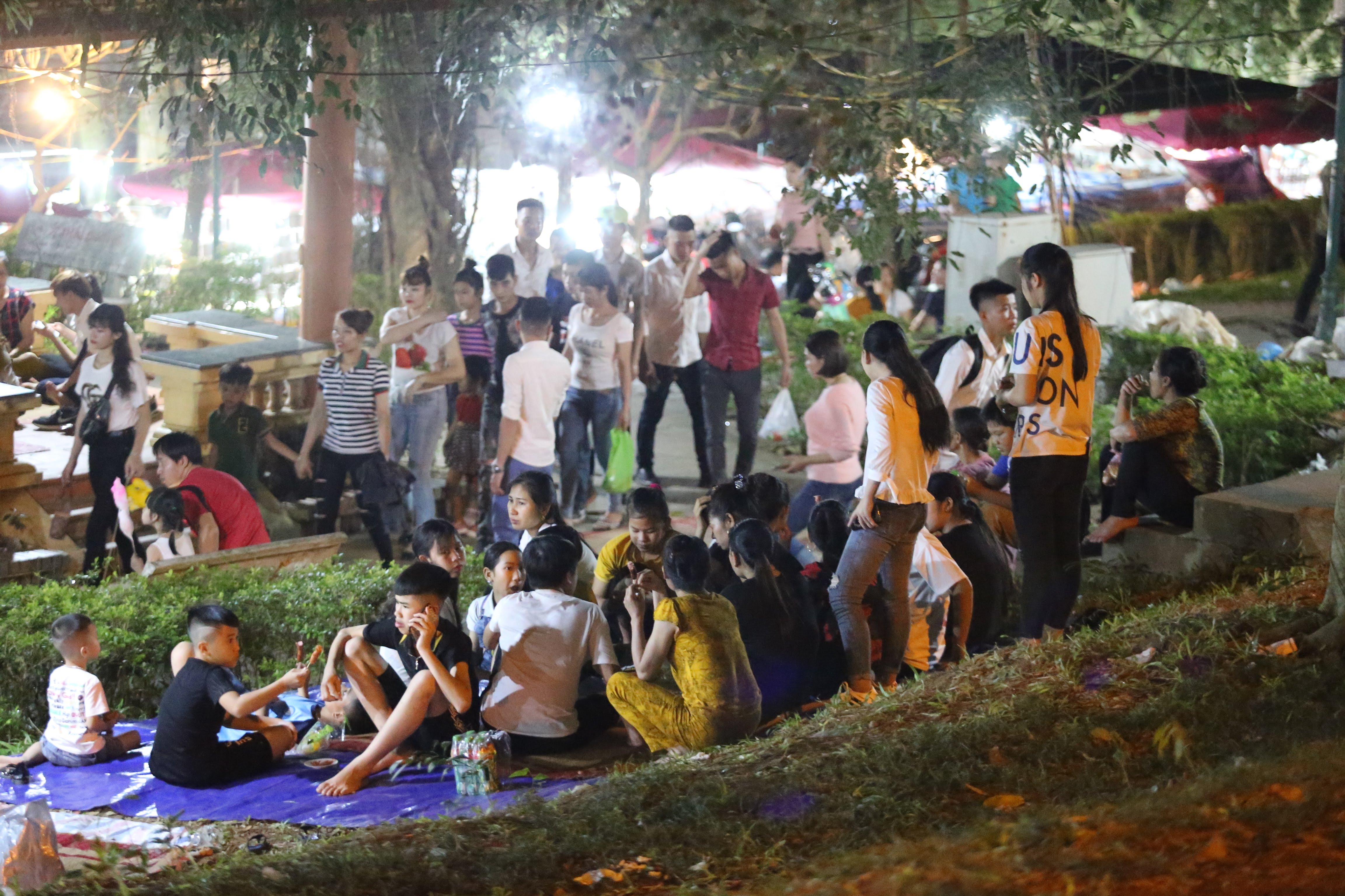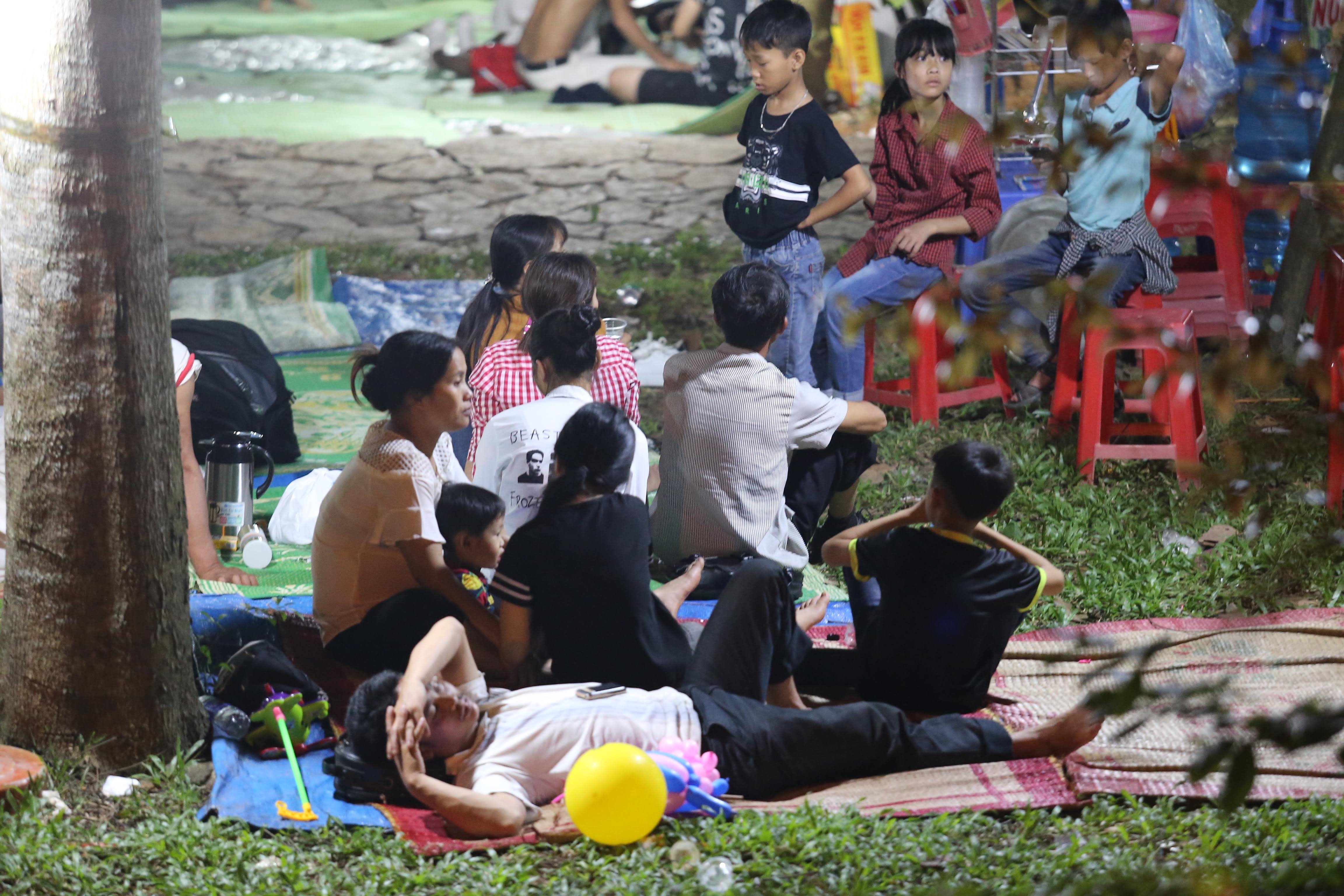 Nhiều người dân thuê bạt, chiếu để ngồi nghỉ chân sau khi chen chân vào dòng người đông đúc.