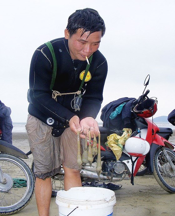 Xâu rum biển đầu tiên sau gần 3 giờ ngụp lặn.