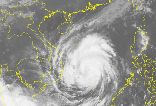 Ảnh mây vệ tinh bão Damrey lúc 7h ngày 3/11. Nguồn: Trung tâm dự báo khí tượng thuỷ văn Trung ương.