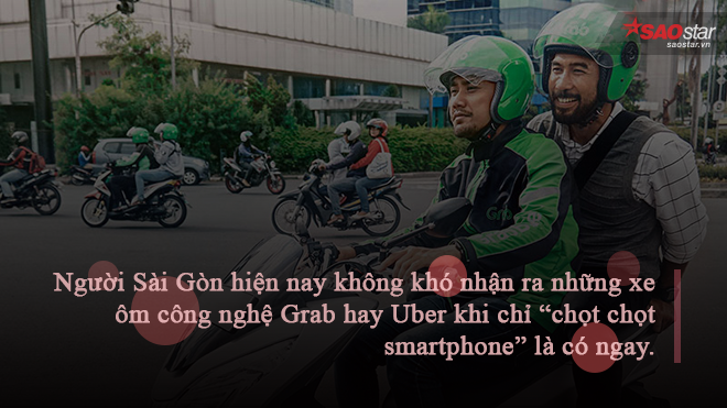 Người Sài Gòn hiện nay không khó nhận ra những xe ôm công nghệ Grab hay Uber khi chỉ 'chọt chọt smart phone' là có ngay.