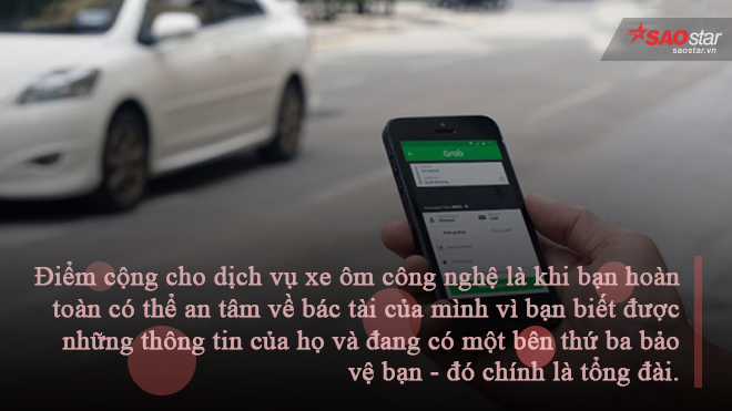 Và đây cũng chính là một điểm cộng cho dịch vụ xe ôm công nghệ khi mà bạn hoàn toàn có thể an tâm về bác tài của mình vì bạn biết được những thông tin của họ và đang có một bên thứ ba bảo vệ bạn - đó chính là tổng đài.