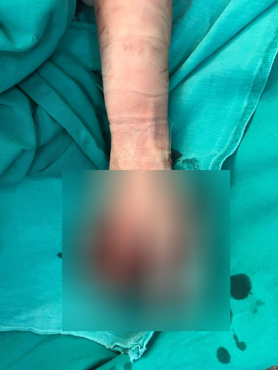Bàn tay nạn nhân bị dập nát do điện thoại phát nổ.