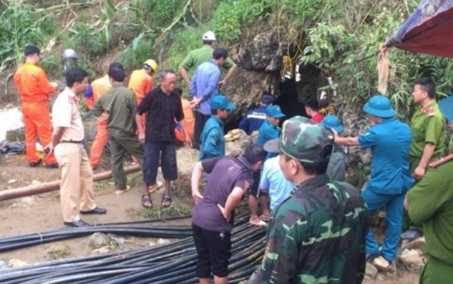Trước đó, vào trưa 31/5, ông Giàng Seo Lử cùng em trai là Giàng Seo Dùng chui vào hang đá sâu nằm trong lòng núi để lấy máy bơm nước ra ngoài.