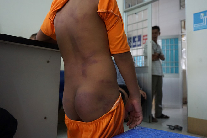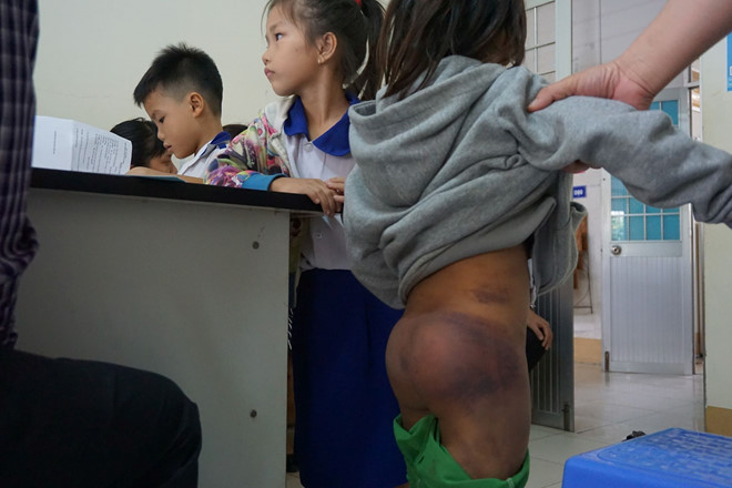 Một bé với vết bầm trên mông. Ảnh: báo Thanh Niên