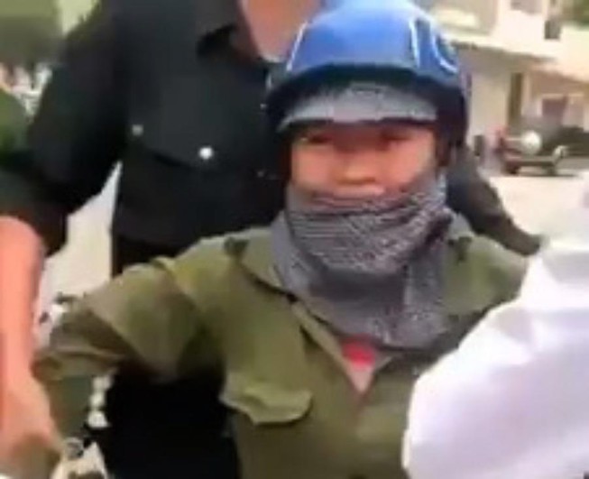 Lực lượng đô thị phường Bãi Cháy, TP. Hạ Long, Quảng Ninh khống chế một người phụ nữ bán hàng rong. Ảnh cắt từ clip
