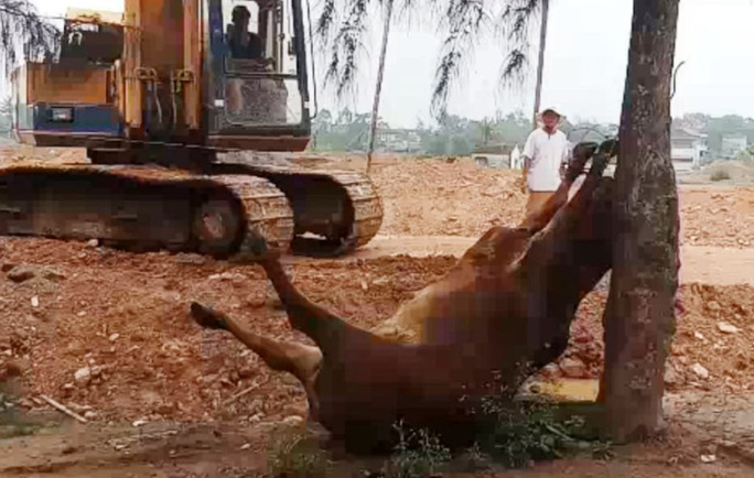 Tưởng những người này đi đâu đó, ông Nhì cũng không lại gần hỏi han mà đi vào trong nhà. Lúc này đàn bò vẫn đang gặm cỏ bình thường. Nhưng khoảng 30 phút sau, khi hai người lạ mặt rời đi, ông Nhì ra cho gà ăn thì tá hỏa thấy 3 con bò đang giãy dụa, sùi bọt mép.