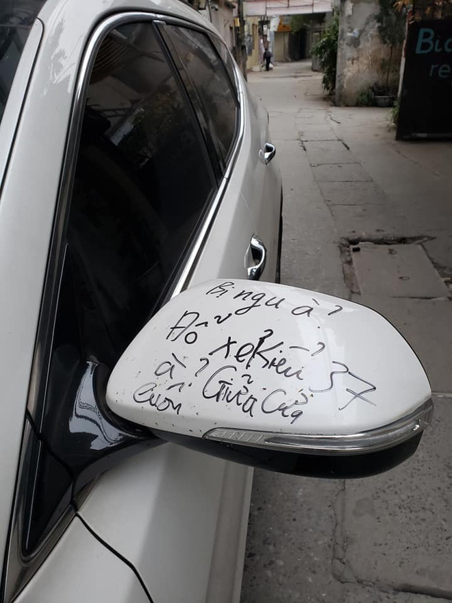 Không những thế, chủ nhà còn bực tức và giải thích về hành động của mình trên gương chiếu hậu của ô tô: “Bị ngu à? Đỗ xe kiểu 37 à? Giữa cửa cuốn”.
