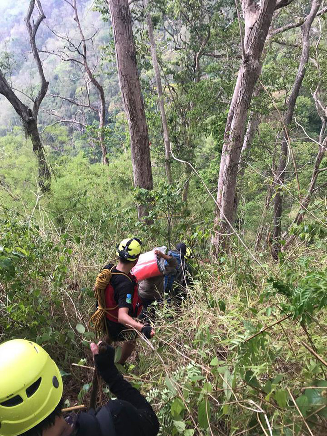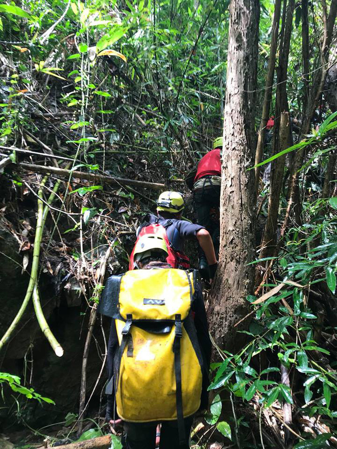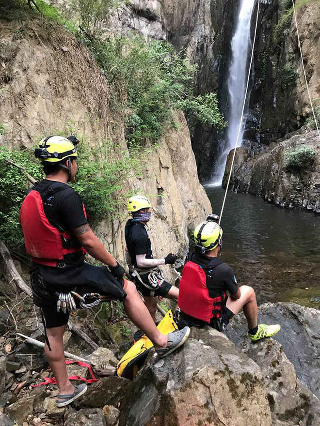 Anh em chúng tôi vận chuyển một lượng đồ nghề khá lớn để xuống thác làm công tác cứu hộ. Vấn đề lớn nhất lúc này là mọi thứ nó đang nằm ngoài sức tưởng tượng của anh em, về địa hình, về thời gian tiếp cận và thi thể đã nằm đó quá lâu đang phân hủy mạnh” - anh Huy kể lại hành trình của đoàn trên Facebook cá nhân.