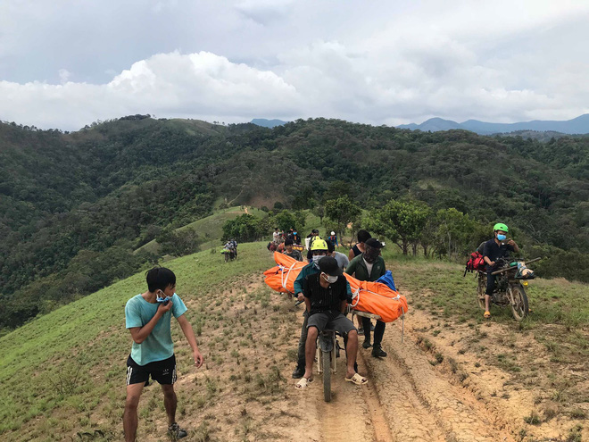 Nhóm cứu hộ đến Phan Dũng đưa thi thể chàng phượt thủ Thi An Kiện về với gia đình.