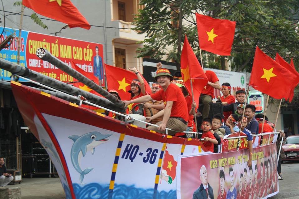 Chiếc xe được trang trí mô phỏng hình con thuyền tiến về phía trước. Được biết đây là ý tưởng hết sức ngẫu nhiên của người dân, được thực hiện chóng vánh để kịp sang nhà thủ thành Tiến Dũng.