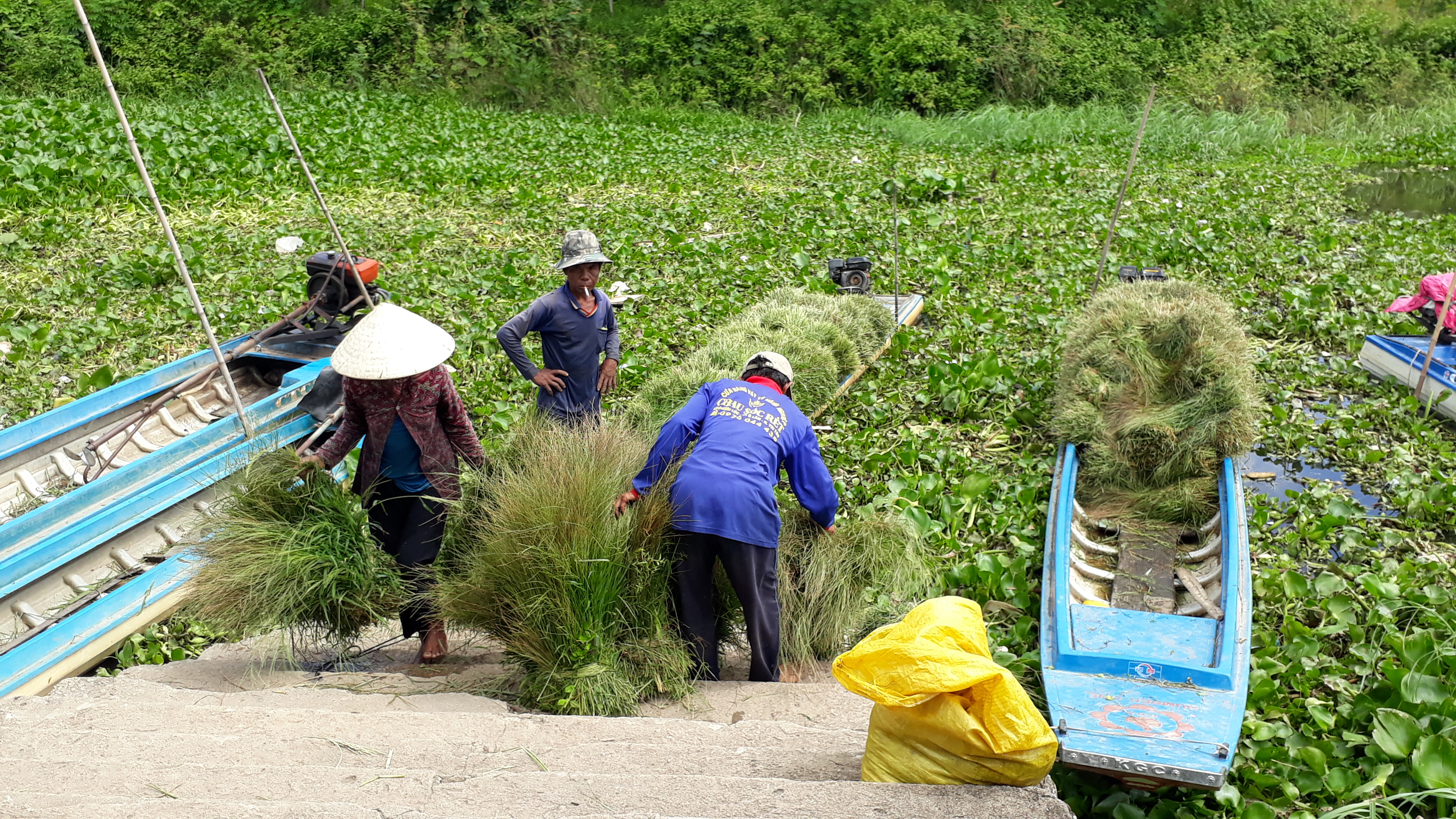 Ngoài việc “săn” cỏ các khu rừng tràm trong xã và các địa phương lân cận những người dân nơi đây còn vào tận vùng Đầm Trích (thuộc tỉnh Kiên Giang) để cắt cỏ. Cứ sáng sớm những người dân nơi đây lại tủa đi khắp vùng lân cận cắt cỏ mang về bán ở chợ Ô Lâm bán.