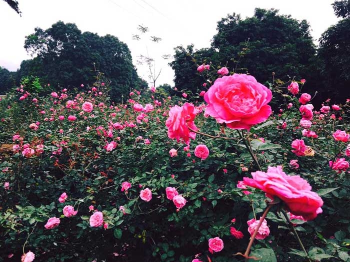 Hoa hồng đang đua nhau nở trong vườn hồng của chị Hằng Karose