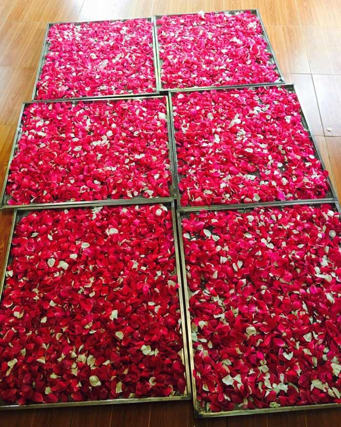 Hoa hồng thu hái được đem chưng cất thành nước hoa hồng.