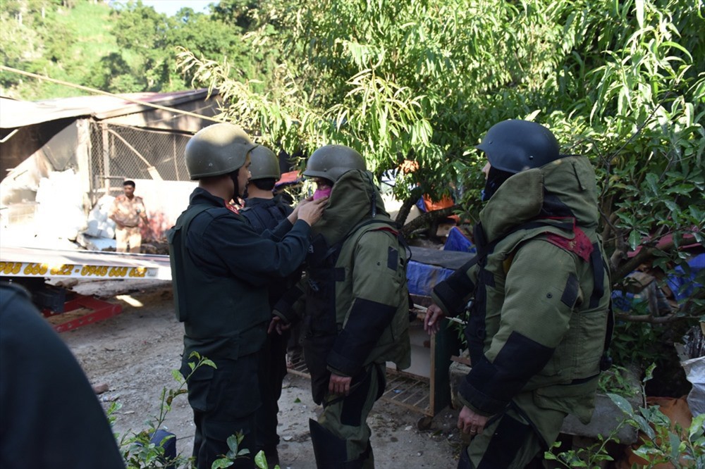 “Khi biết lực lượng Công an bao vây, chúng tính toán đến việc chống đối khi đặt ngay ở cổng ra vào có 4 bình gas, kẹp giữa có 1 can xăng 3 - 5 lít và cả lựu đạn. Nếu tấn công, bình gas sẽ gây nổ với sức công phá của 1 - 2 bình gas có thể hậu quả khôn lường (khoảng 200m). Ngoài ra, lựu đạn cũng được các đối tượng rải ở nhiều vị trí trong nhà”, Đại tá Phùng Tiến Triển, Phó Giám đốc Công an tỉnh Sơn La, Phó trưởng ban chuyên án cho biết.