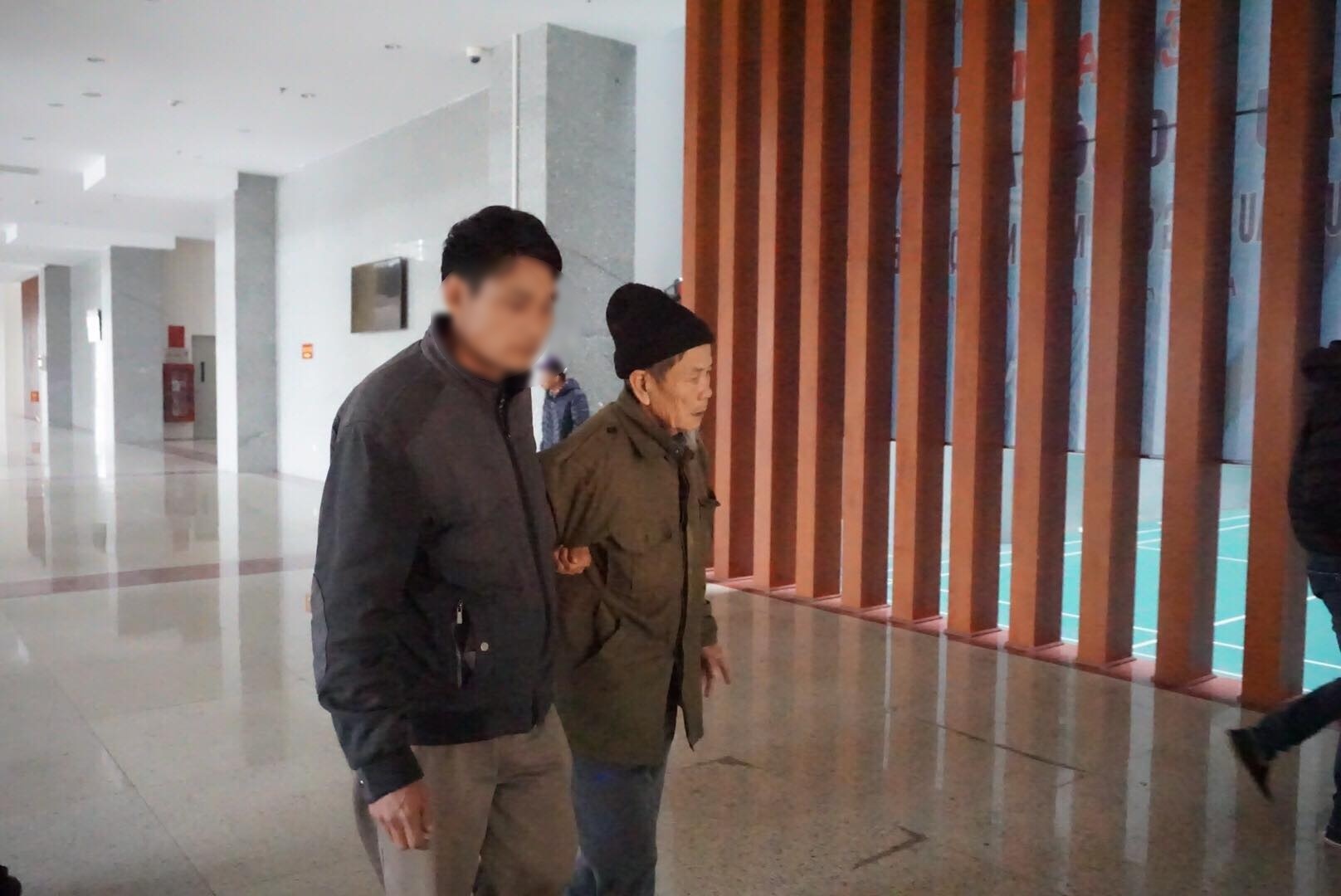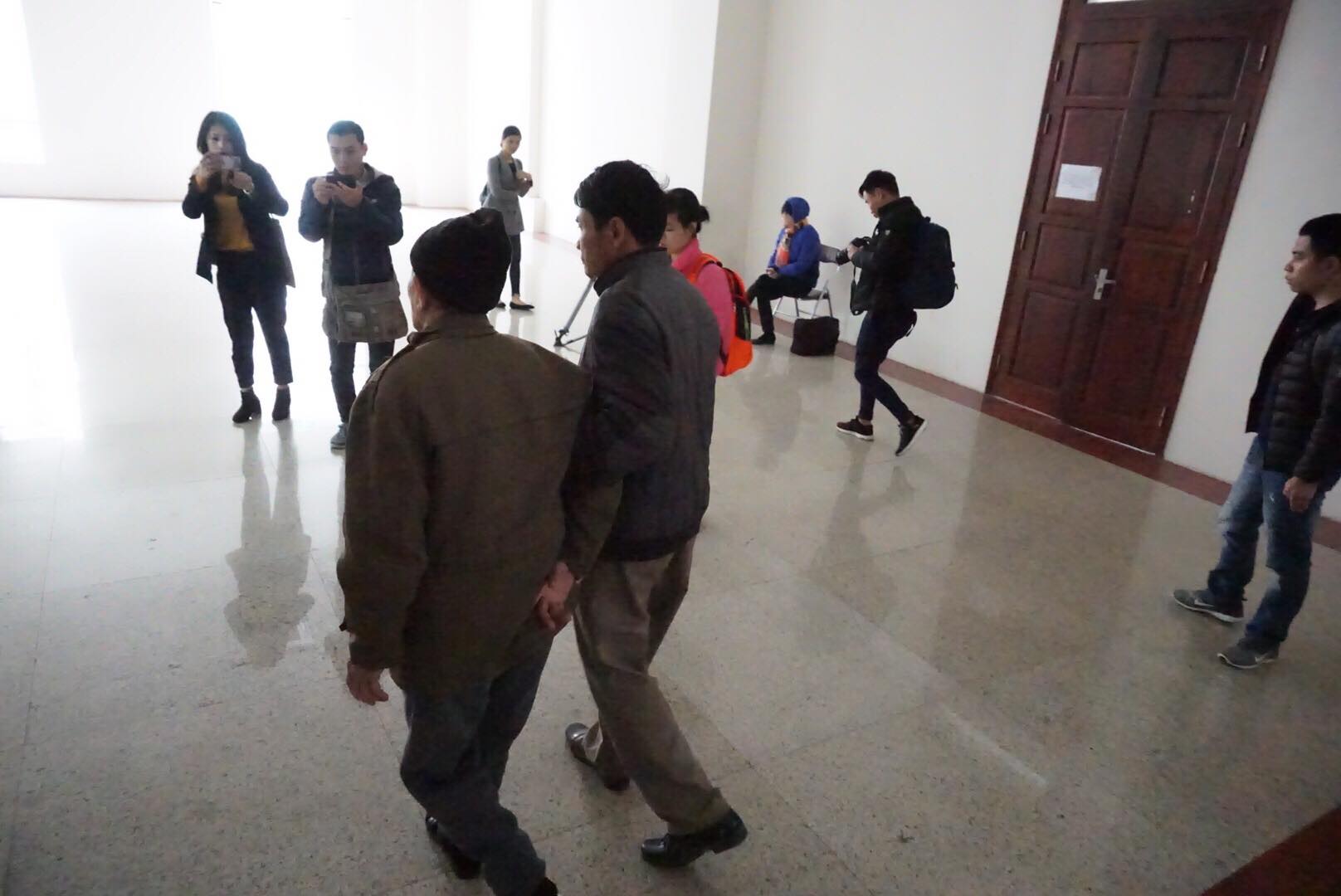Bị cáo Nguyễn Danh Vĩnh được người thân dìu đến toà.