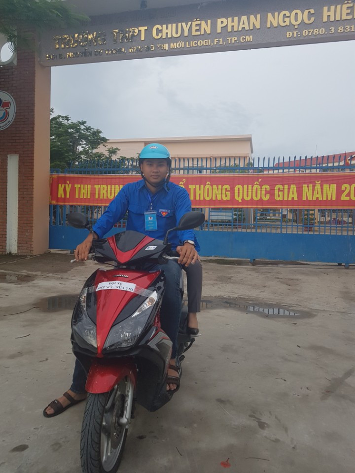“Các bạn thí sinh có thể liên hệ tại bàn hướng dẫn nơi có các bạn tình nguyện viên phường 1 trực để được hỗ trợ, bằng hình thức liên hệ trực tiếp hoặc để lại số điện thoại để xác định thời gian, địa điểm đi. Ngoài hoạt động xe ôm miễn phí, Đoàn phường còn hỗ trợ các thí sinh về nhà trọ giá rẻ, các quán ăn. Tại điểm trực các tình nguyện viên sẽ hỗ trợ thí sinh các thủ tục thi, chuẩn bị nước suối, dầu để phục vụ nếu có sự cố xảy ra” - chị Hằng thông tin.