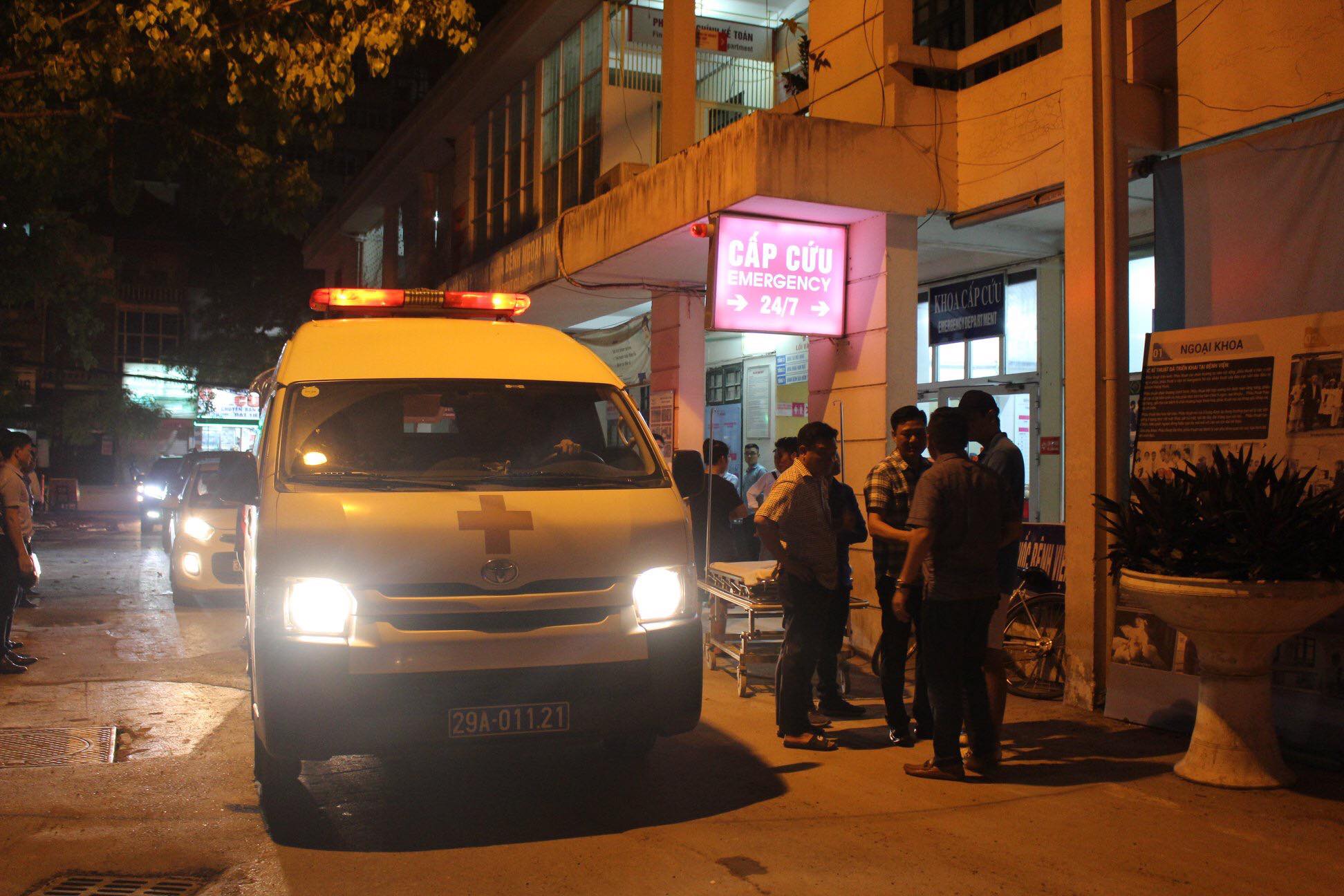 Xe cấp cứu đưa bé trai đến bệnh viện nhưng học sinh L. không qua khỏi.
