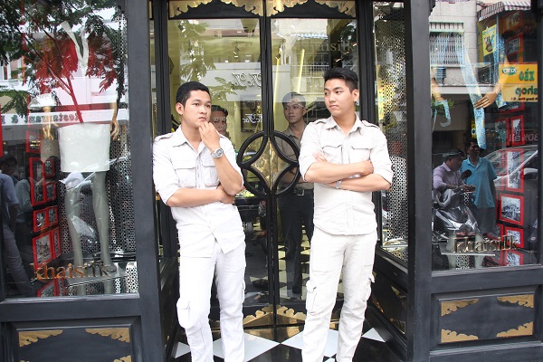 Bảo vệ chốt chặng trước lối vào cửa tiệm kinh doanh của Khaisilk rất nghiêm ngặt