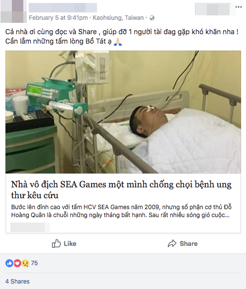 Mọi người kêu gọi giúp đỡ Hoàng Quân trên mạng xã hội.
