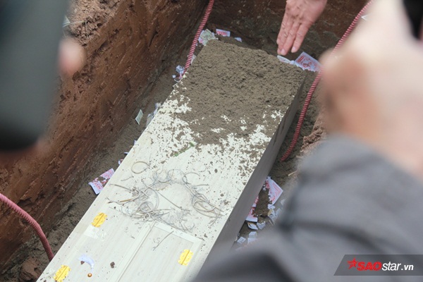 Đúng 8h, linh cữu bé Linh được người dân đưa ra xe tang để mai táng. Vì vẫn còn quá sốc trước nỗi đau mất con, chị Nguyễn Thị Nguyên (mẹ bé Linh) được người dân đưa vào trong nghỉ ngơi.