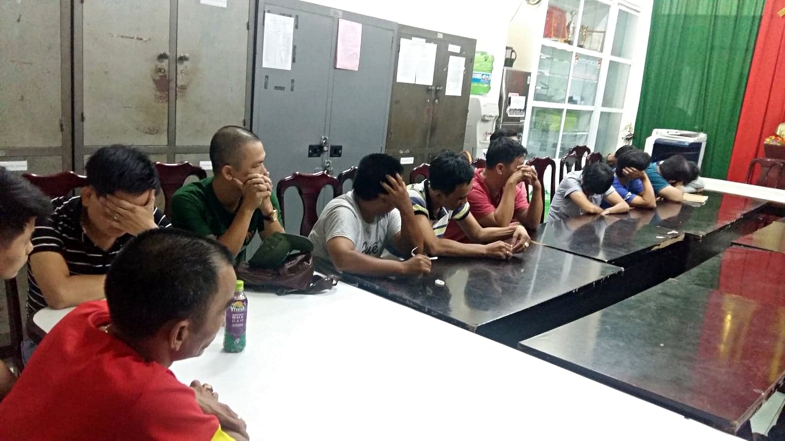 Các con bạc bị tạm giữ tại cơ quan điều tra. Ảnh: CTV