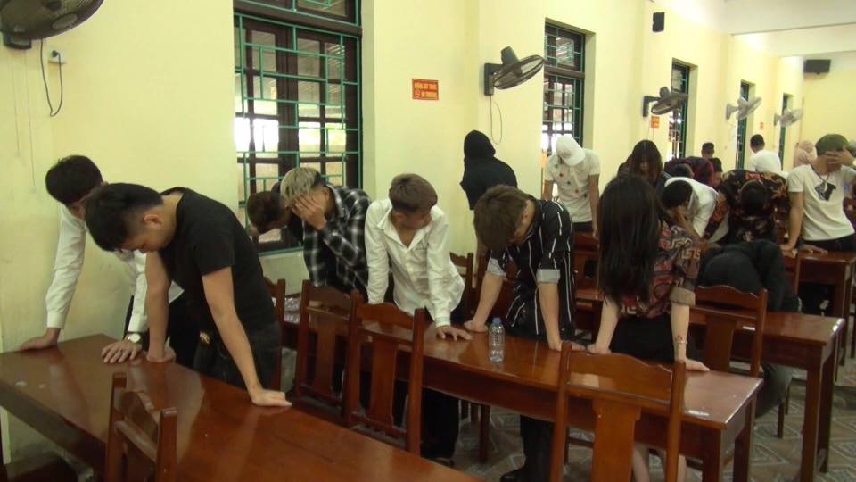 Hình ảnh hàng chục nam thanh nữ tú bị bắt giữ vì sử dụng ma tuý. Ảnh Facebook