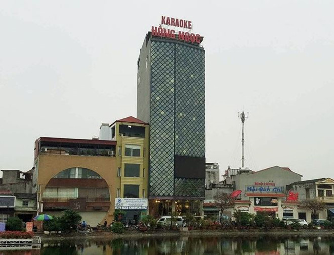 Quán karaoke Hồng Ngọc, nơi phát hiện hàng chục khách đang phê thuốc. Ảnh: Tiền Phong.