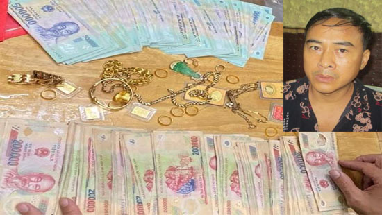 Khám xét nhà của nghi phạm, lực lượng chức năng thu được nhiều trang sức vàng và 220 triệu đồng tiền mặt. Sa đang bị tình nghi gây ra nhiều vụ trộm két sắt khác ở Đà Nẵng.