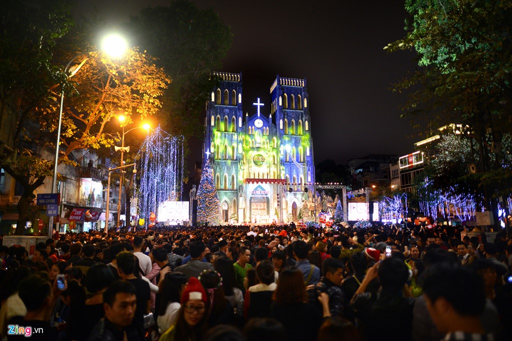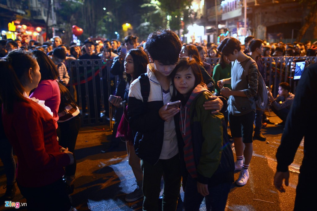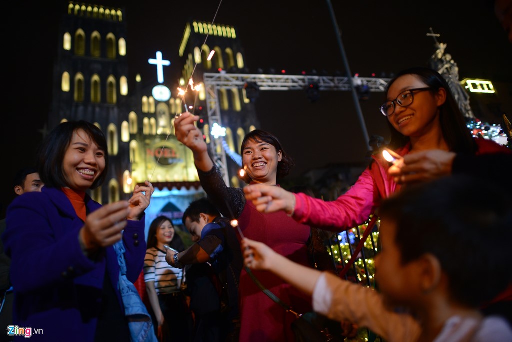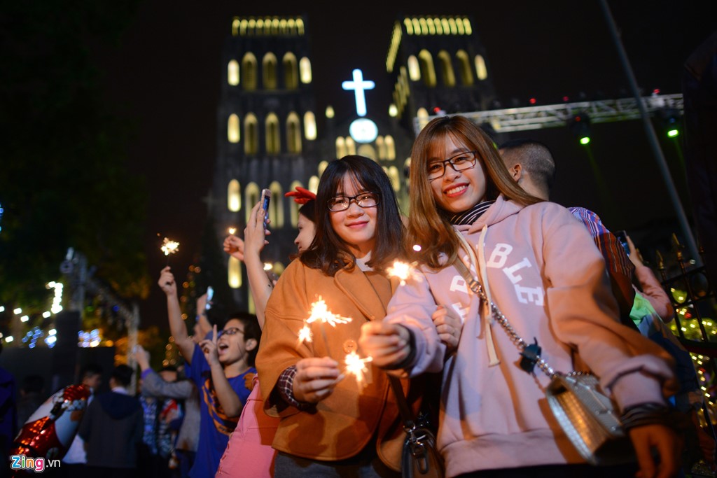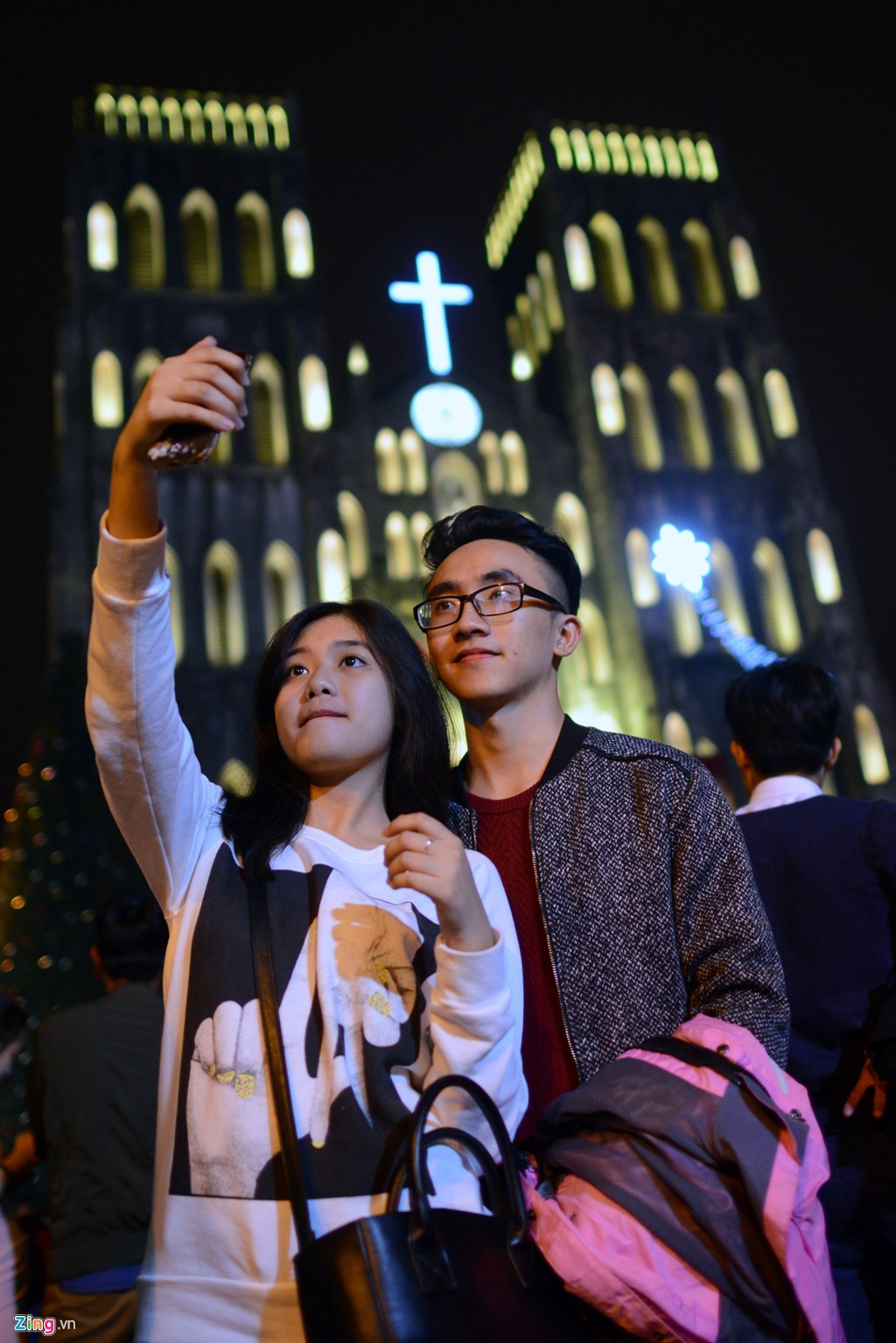 Càng gần tới 12h đêm, giới trẻ càng tập trung đông về phía trước sân Nhà thờ Lớn Hà Nội để đón Giáng sinh tối 24/12. Trong số này có nhiều người theo đạo và du khách quốc tế.