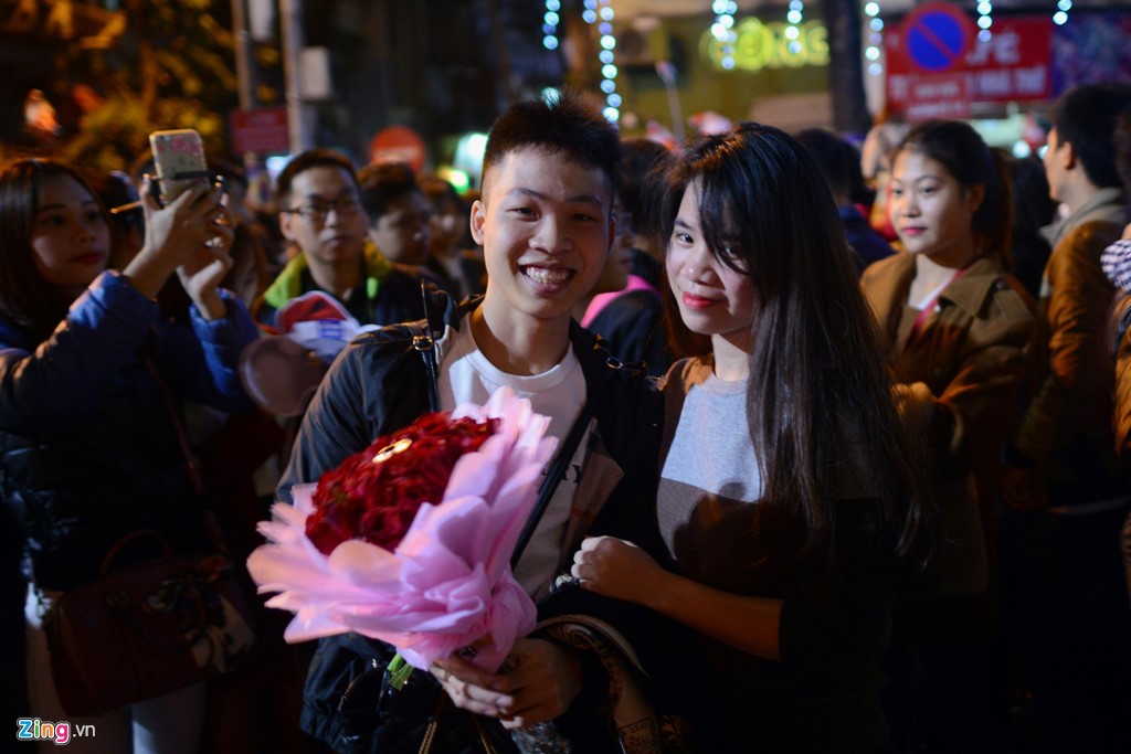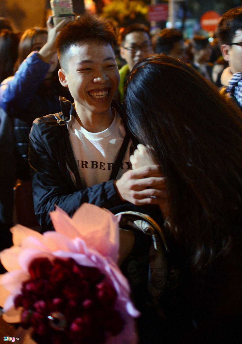 Xung quanh, nhiều đôi bạn trẻ cũng trao cho nhau những nụ hôn trìu mến với những lời chúc an lành hạnh phúc.