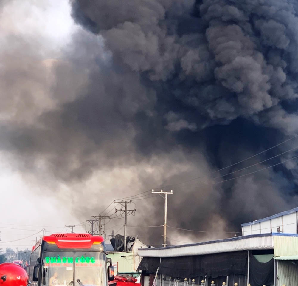 Sau đó, ngọn lửa lan nhanh và gây cháy lớn, thiêu rụi nhà kho rộng 3.000 mét vuông. Tuy không có người thương vong nhưng vụ cháy đã khiến công ty thiệt hại khoảng 60 tỉ đồng.