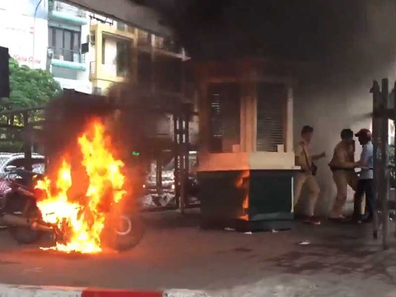 Theo cán bộ Phòng CSGT đường bộ, đường sắt (PC67) Hà Nội, đối với các trường hợp như trên, trước tiên CSGT sẽ sử dụng biện pháp nghiệp vụ để khống chế đối tượng đồng thời dập tắt đám cháy, sau đó bàn giao vụ việc cho công an phường sở tại giải quyết theo thẩm quyền.