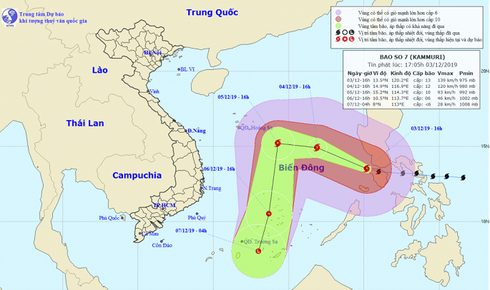 Dự báo đến chiều 4/12, bão Kammuri cách đảo Song Tử Tây 480km về phía Đông Bắc. Sức gió mạnh nhất vùng gần tâm bão mạnh cấp 11-12, giật cấp 15.