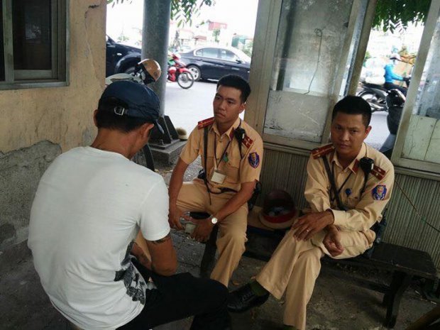 Các chiến sĩ CSGT cùng lực lượng bảo vệ nhanh chóng tiếp cận hiện trường tại khu vực giữa cầu nhanh chóng đưa thanh niên trên ra khỏi khu vực nguy hiểm. Được biết thanh niên trên là Lê Văn P. (28 tuổi, quê xã Bình Lê, Bình Giang, Hải Dương).