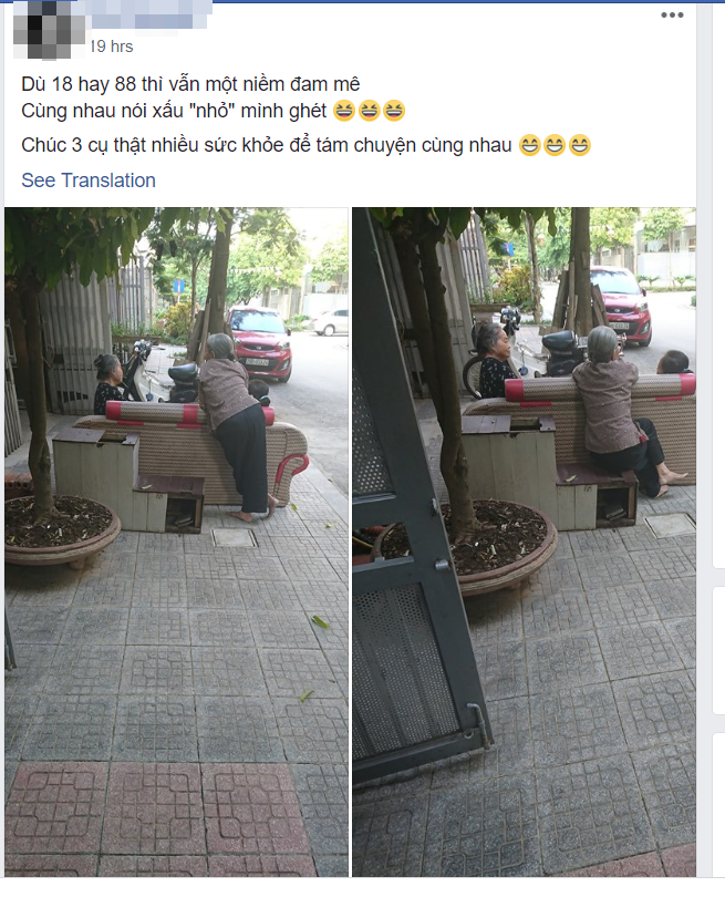 Nếu không tin, bạn có thể xem lại 2 bức ảnh này. Cách đây hơn 10h, nó đã từng khiến dân mạng xôn xao. Đơn giản chỉ là bức ảnh chụp 3 cụ bà ngồi nói chuyện cùng nhau nhưng dòng chú thích: “Dù 18 hay 88 thì vẫn một niềm đam mê…. Cùng nhau nói xấu “nhỏ” mình ghét” đã khiến ai nấy đều phải bật cười.